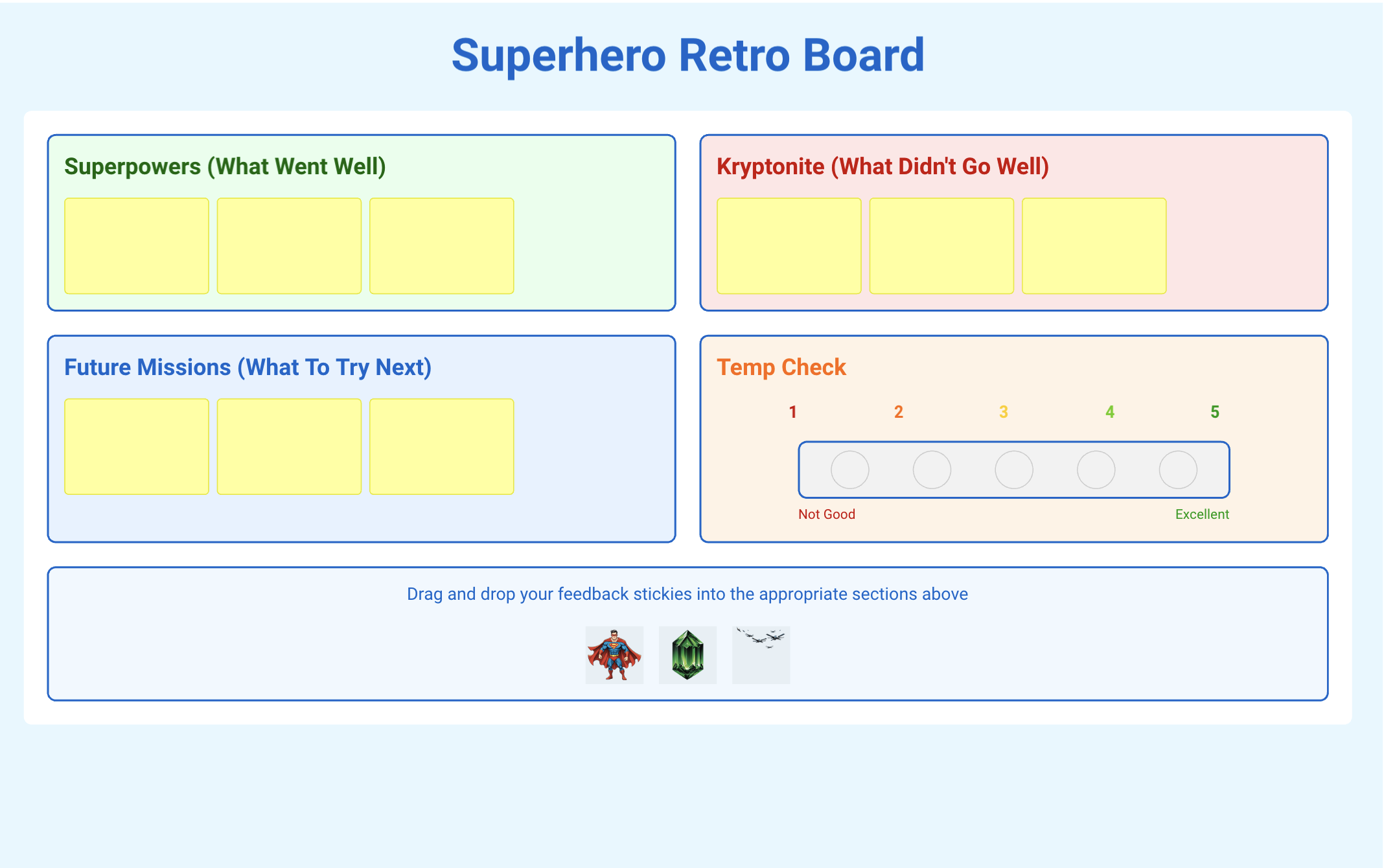 Create a superhero retro template with powers, kryptonite, and future missions sections.