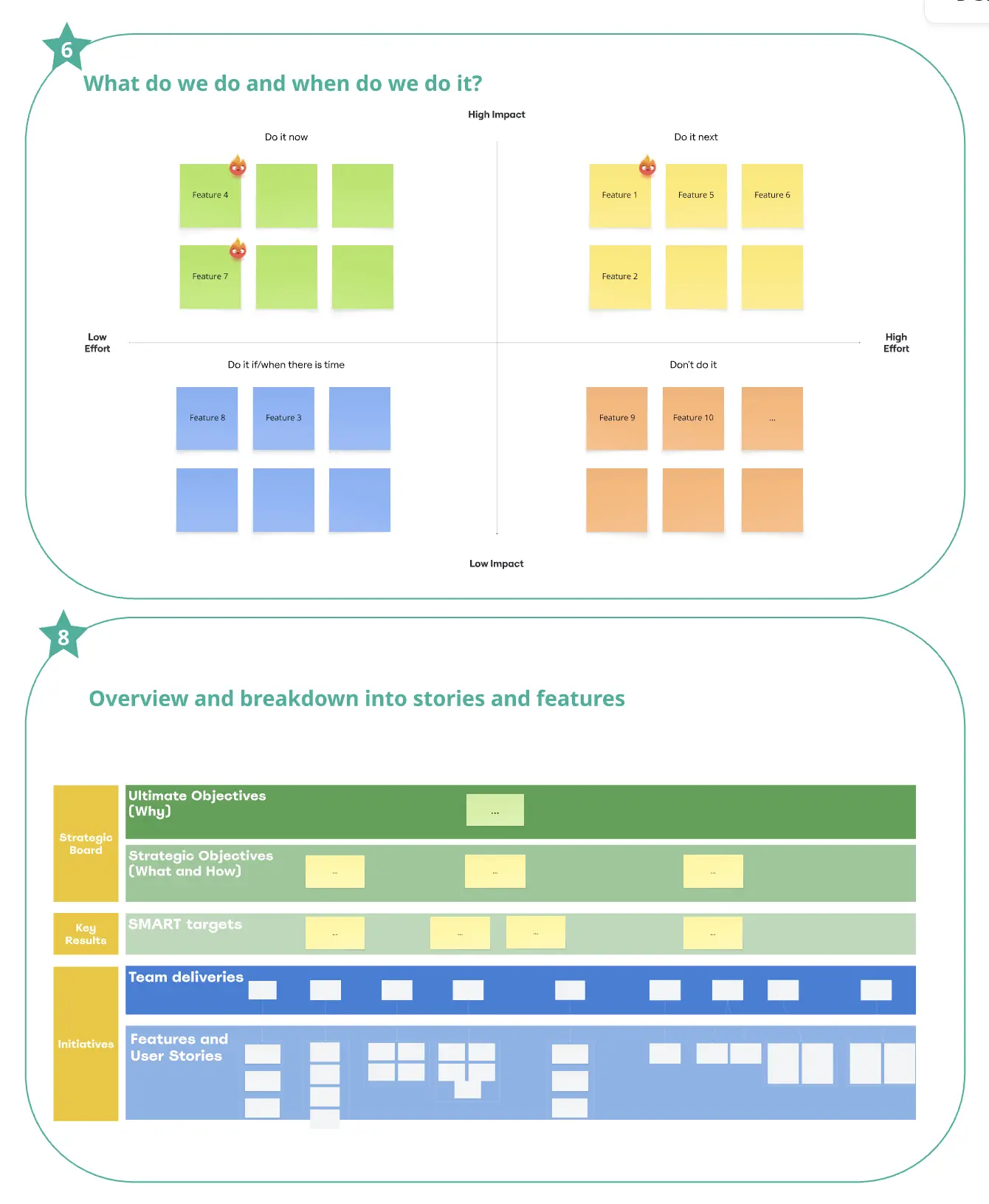 Propel your plans from strategy through to execution with templates for planning sessions, plan prioritization, visual presentations, and beyond. Visually map processes and have a shared understanding of what to do next.